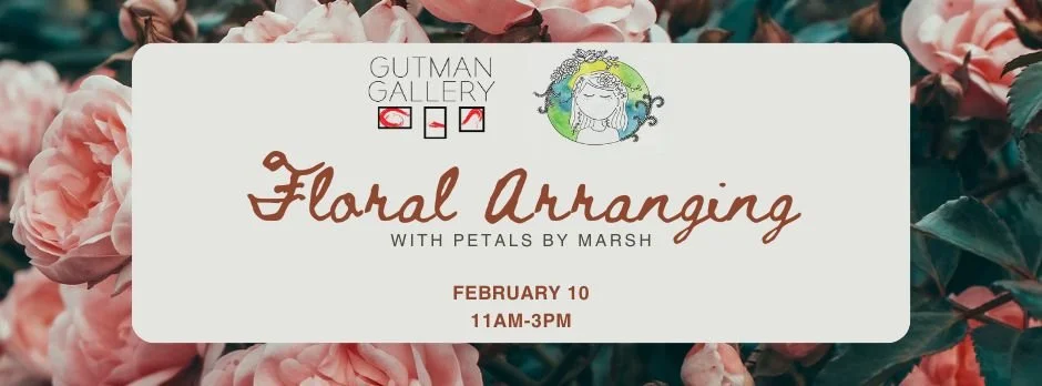 Join Gutman Gallery on Saturday, February 10 for Floral Arranging with Petals by Marsh! Pick out an artist-made vase in the gallery shop and fill it with a floral arrangement designed by you -- just in time for Valentine's Day!